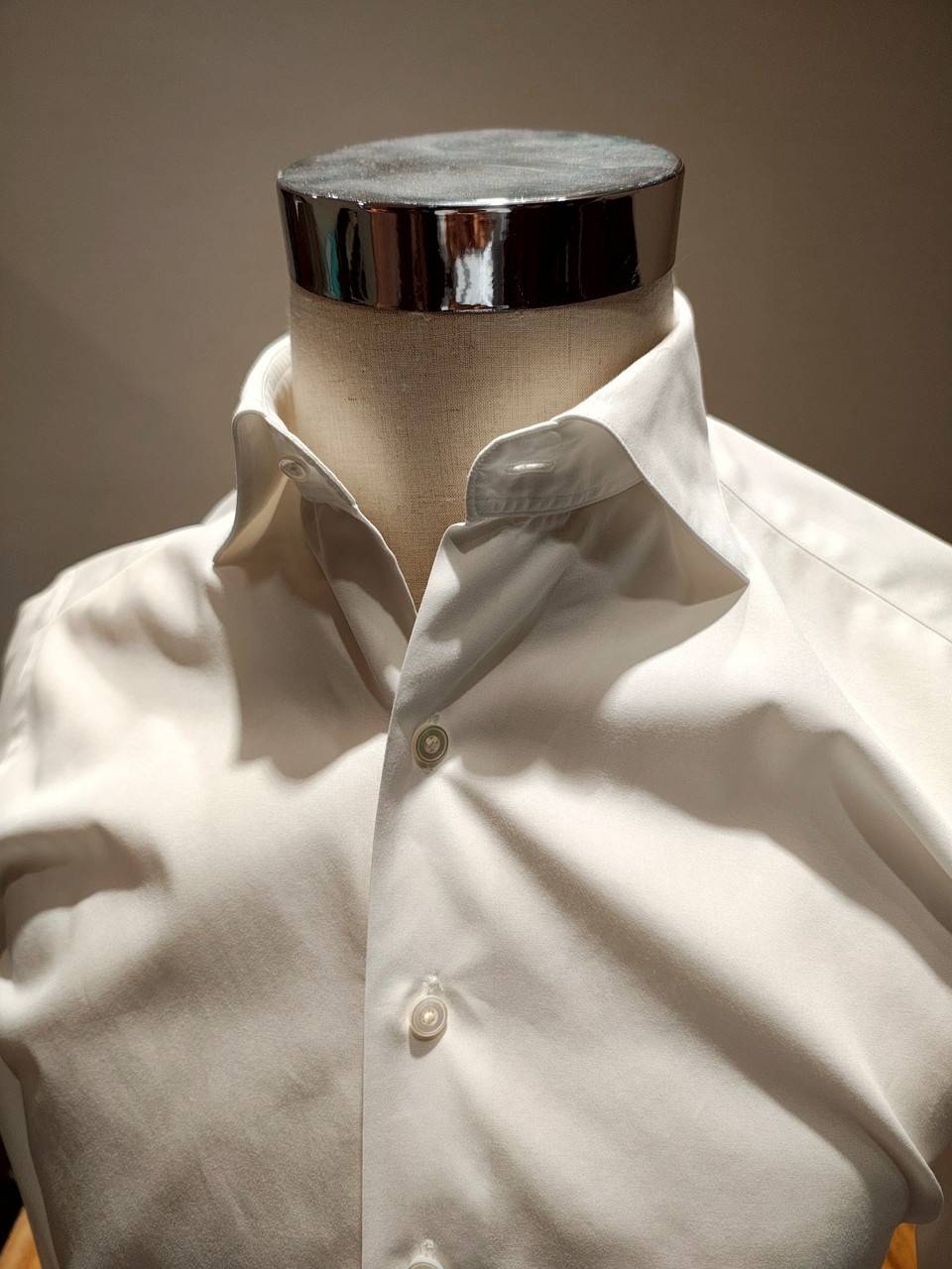 ✔ ワイドカラー(第一ボタンを開けたときに美しく開く)