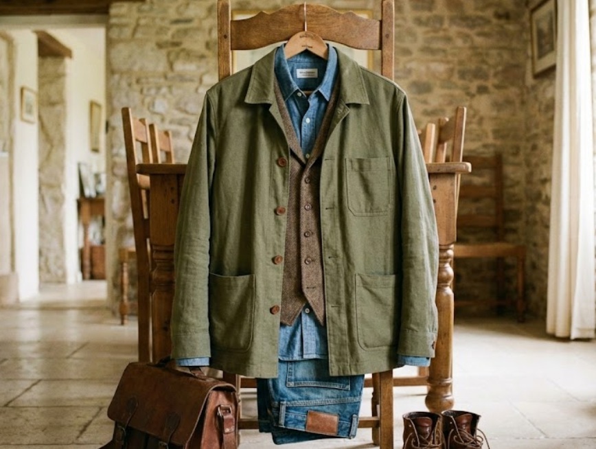 ネイビージャケットにグレーのスラックスという王道コンビに、「薄手のウールジレ(ベスト)」を足してみて。これが本当に優秀なんだ。